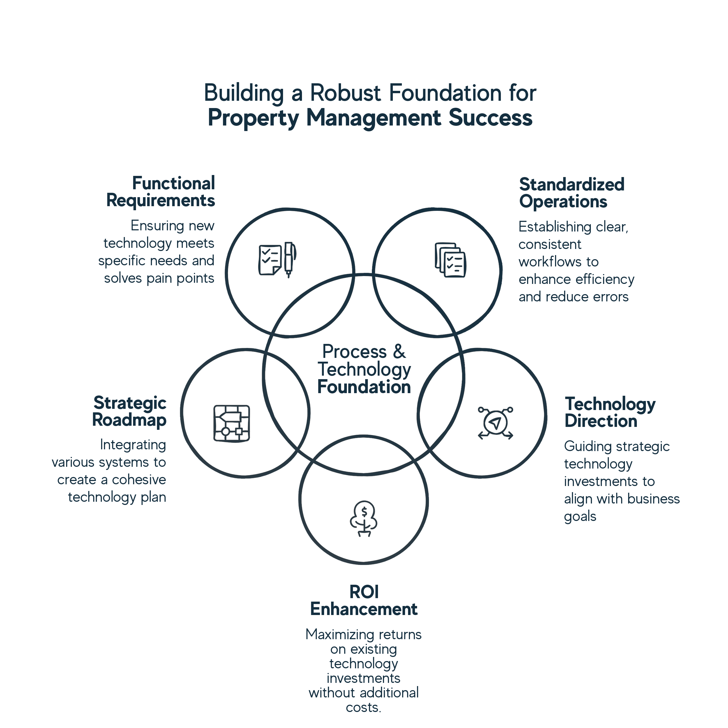 We specialize in support to residential property management firms with 500+ units who need standardized operations and smart technology solutions—from growing regional firms experiencing operational pain points to established family businesses looking to modernize without losing their personal touch.